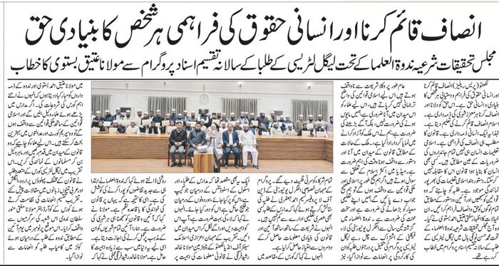 مجلس تحقیقات شرعیہ کے زیراہتمام فیملی لاء لکچرسریزکے تحت ساتویں لکچرکاانعقاد